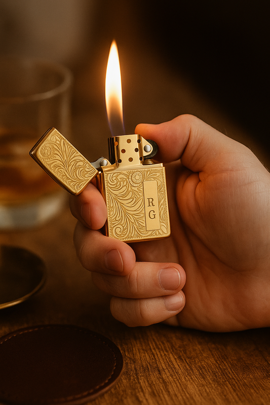 Engraved Gold Lighter – Personalized Brass Floral Scroll Lighter