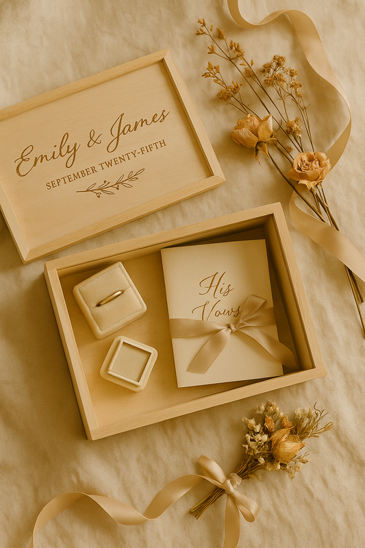 Engraved Wooden Wedding Vows & Ring Keepsake Box
