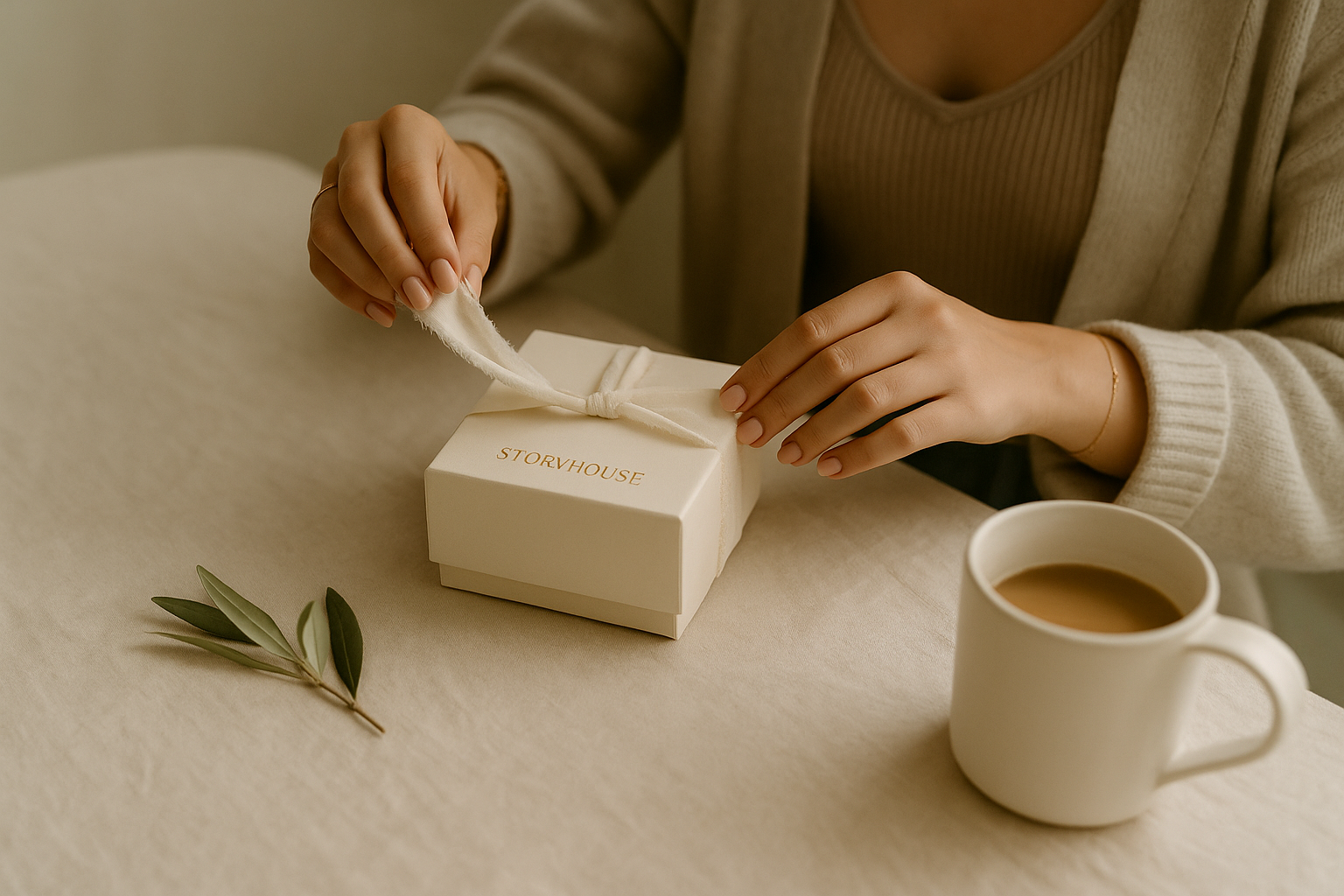 From the wrapping to the reveal, every detail is chosen to feel thoughtful and personal. Each Story House piece arrives nestled in soft textures and timeless tones — because presentation is part of the memory, too.